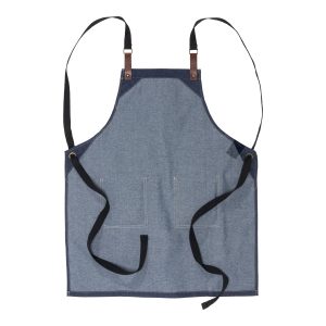 Delantal de cocina ajustable en algodón vaquero denim con 2 bolsillos delanteros.