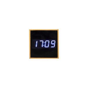 Reloj despertador con LEDs blancos e indicador de temperatura, fabricado en bambú