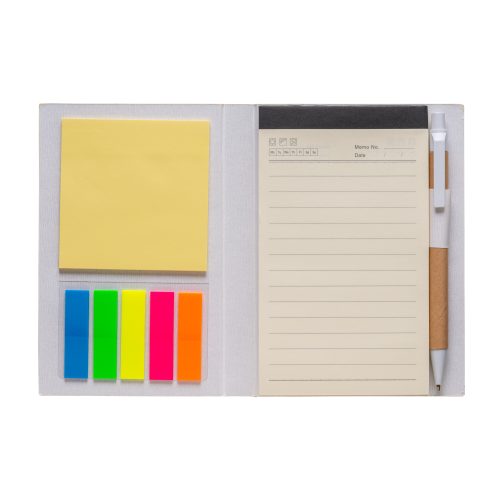 Bloqueo con bolìgrafo de papel y hojas adhesivas