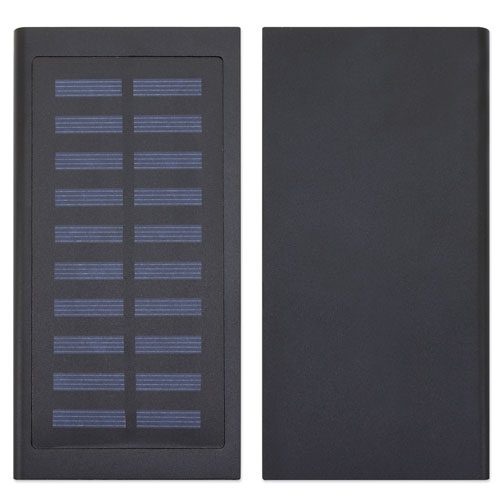 Carga tu power bank con energía solar, con una util linterna LEDCAPACIDAD 8.000 mAh Cable incluido Gran superficie de marcaje.Con conexión de carga Micro USBCada pieza en caja individual