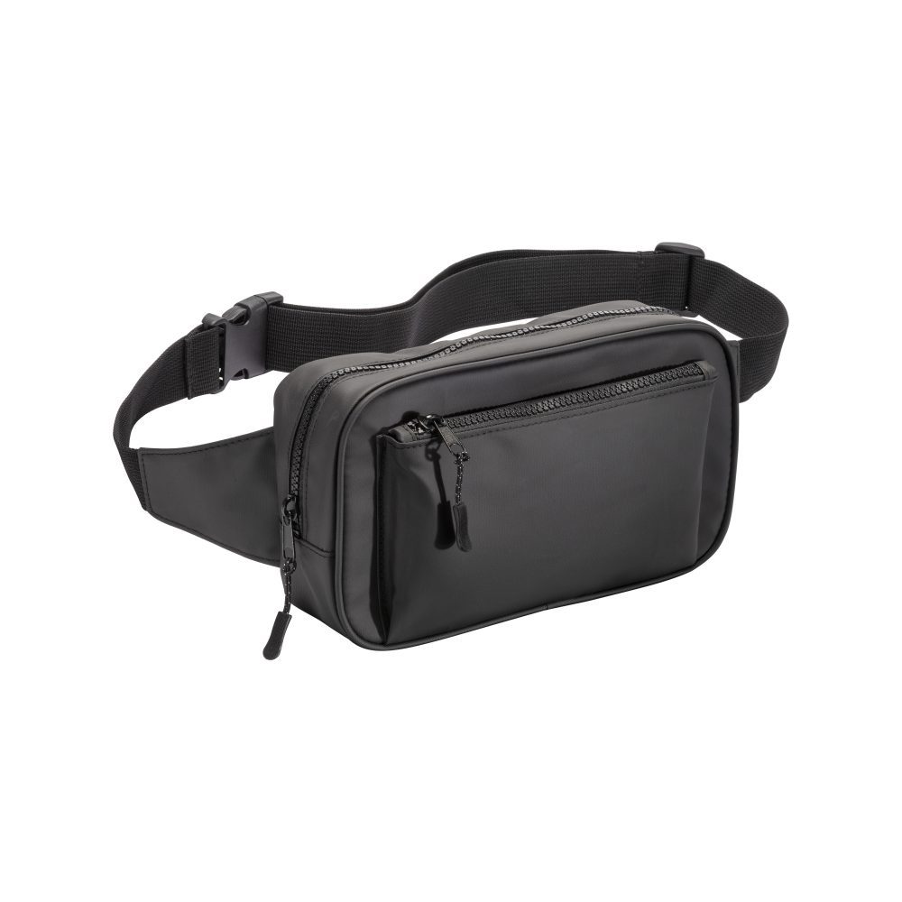 Riñonera de poliéster resistente al agua. Bolsillo frontal con cremallera y cinturón ajustable