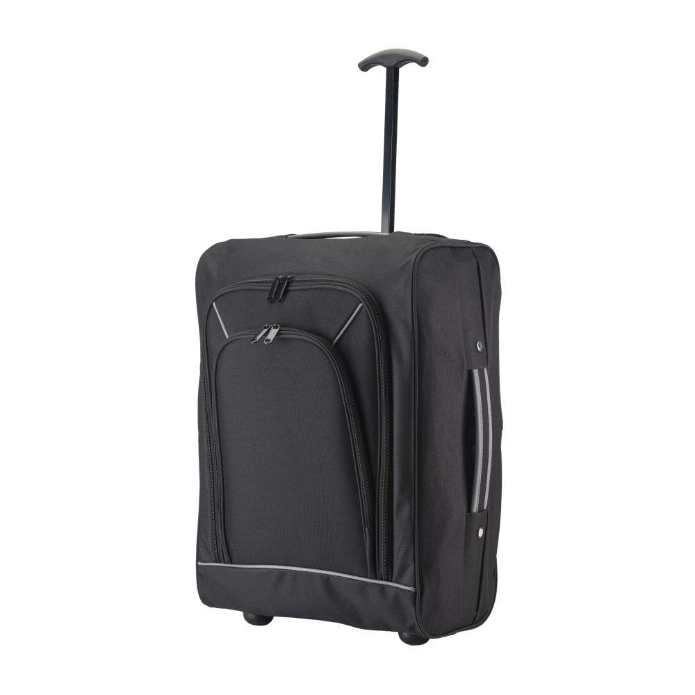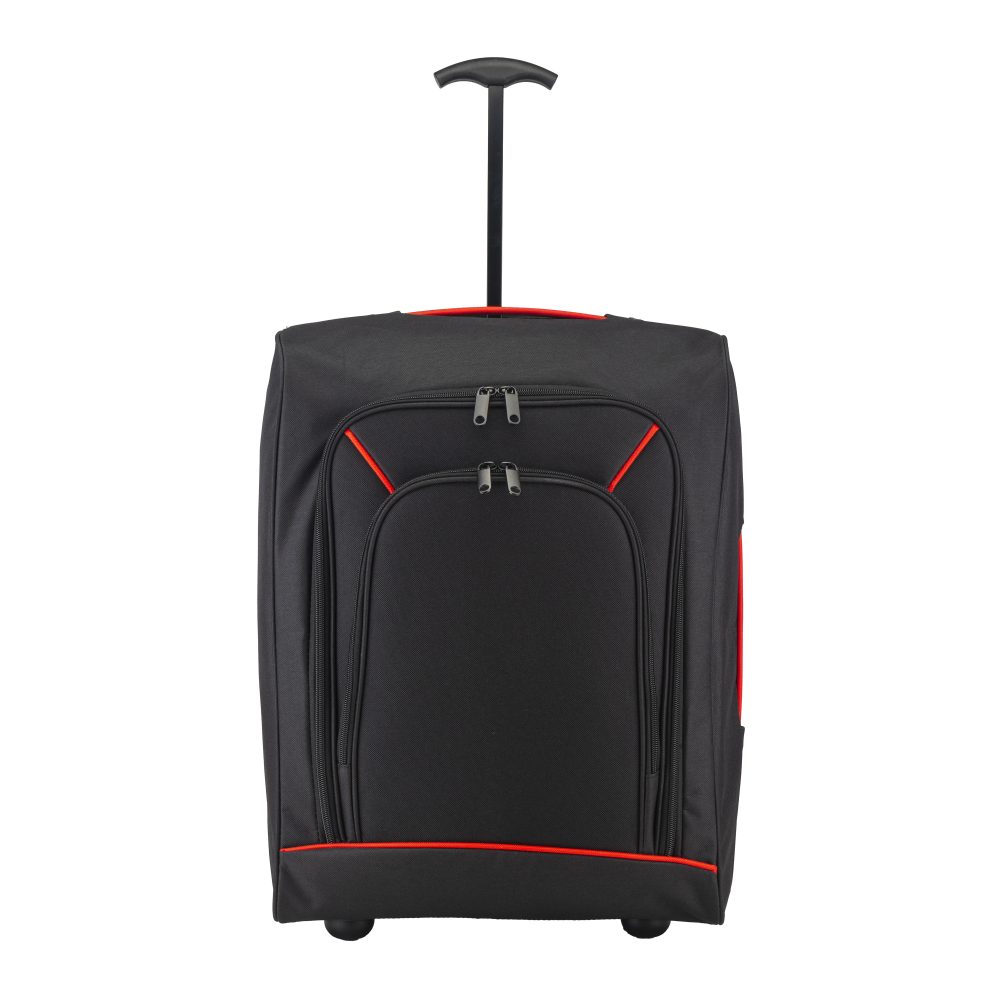 Trolley suave/maleta de viaje de poliéster 600D con detalles coloridos. Amplio compartimento interno, bolsillo frontal con cremallera y asa superior